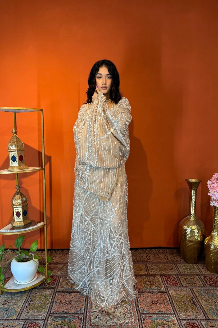 Fabric : NET – Gown , SATIN – Bustier & Pants.