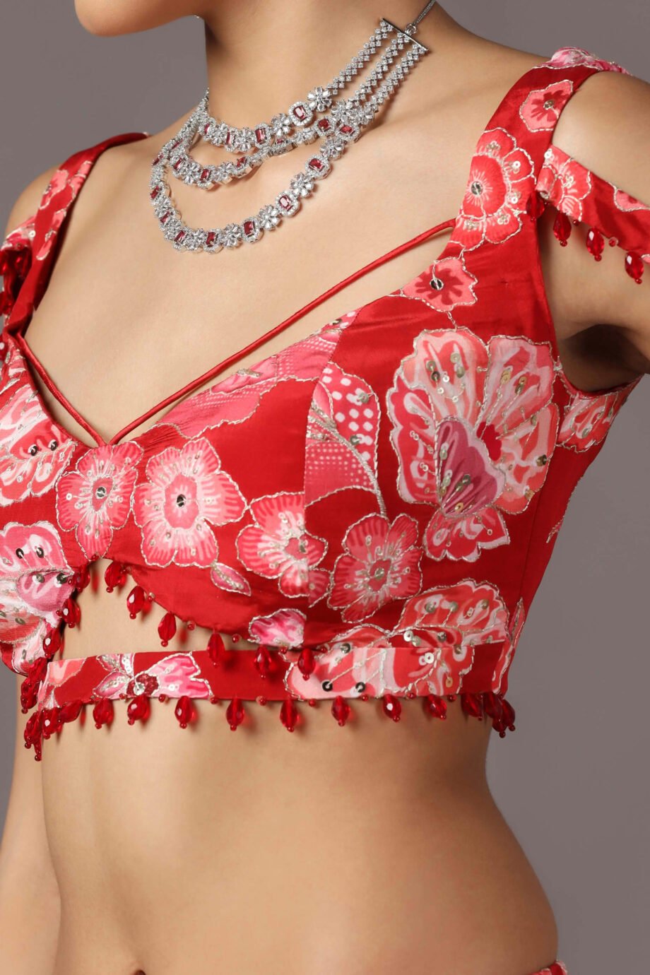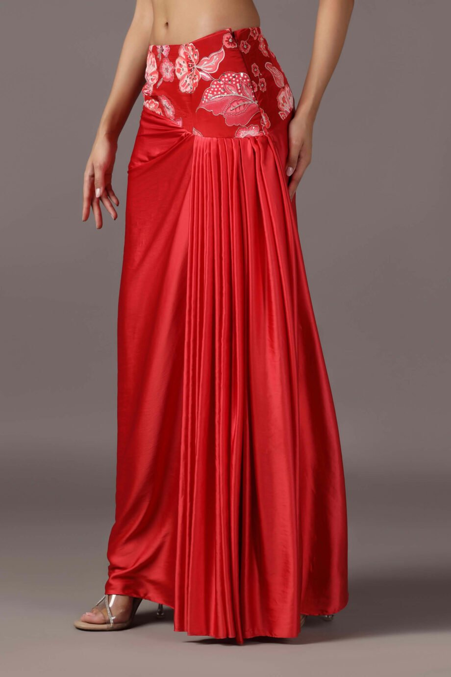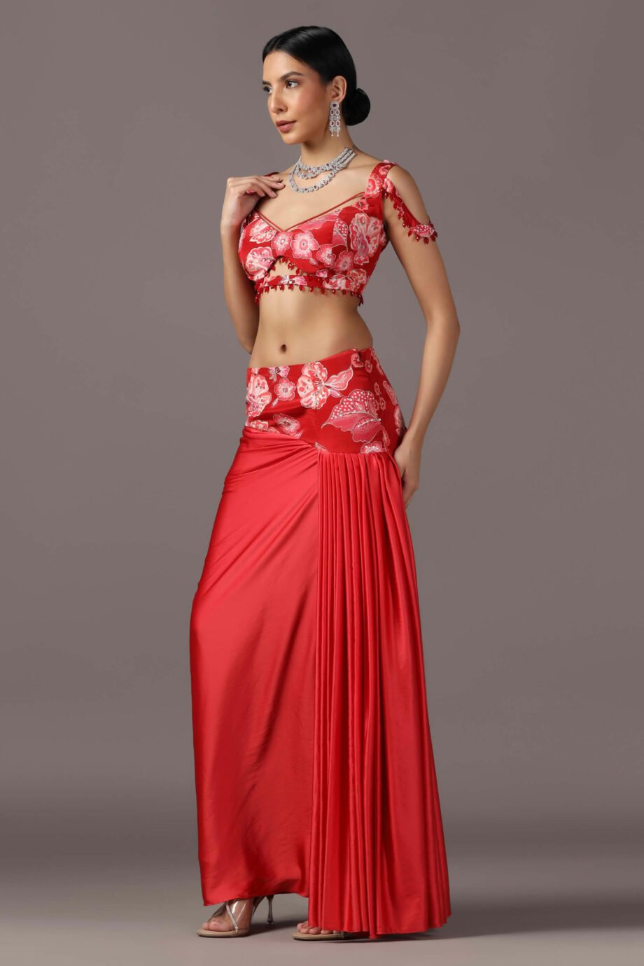 Fabric : Satin – Skirt,Printed crepe – Blouse