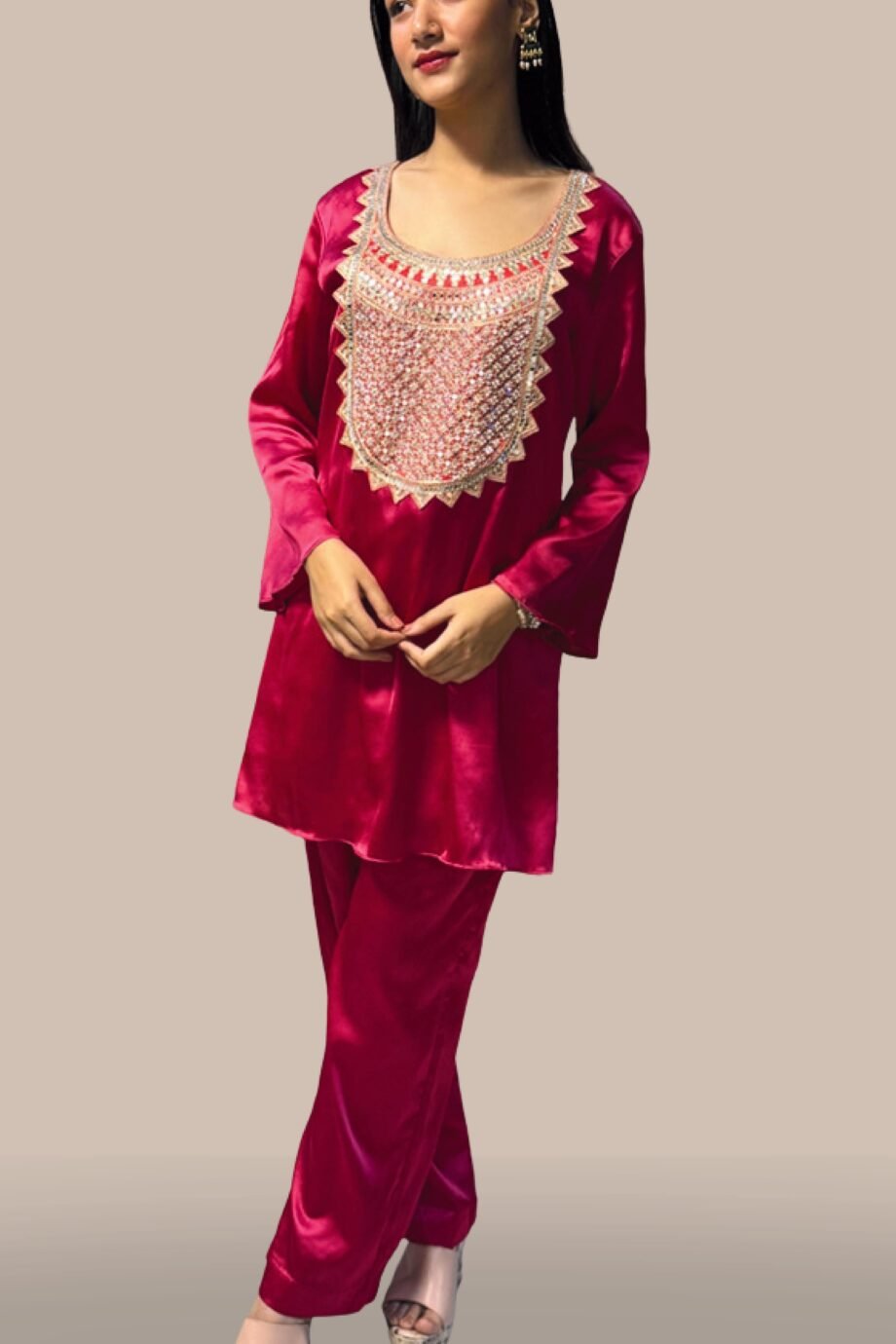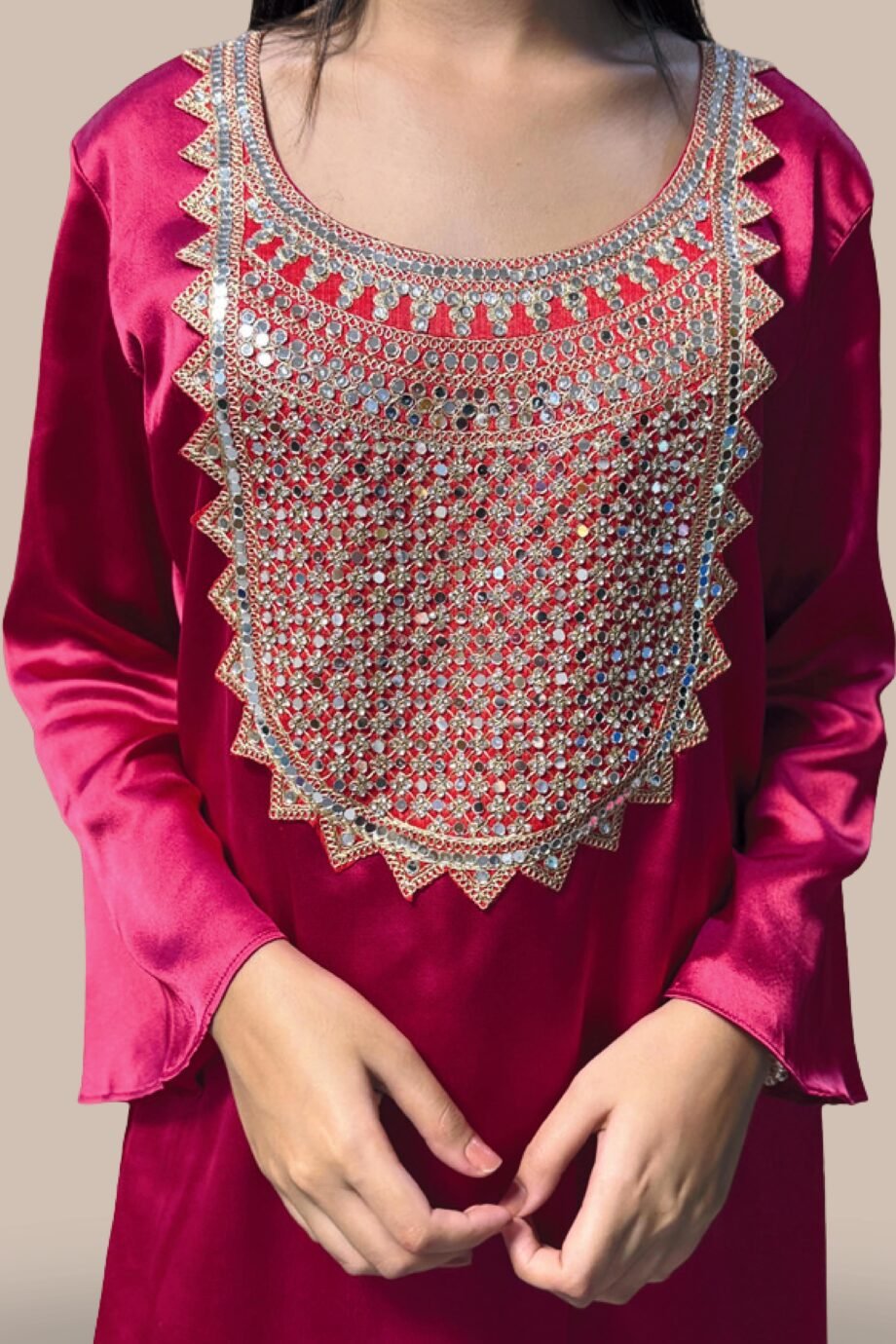 kurta = Satin, Pants = Satin, Dupatta = Crepe