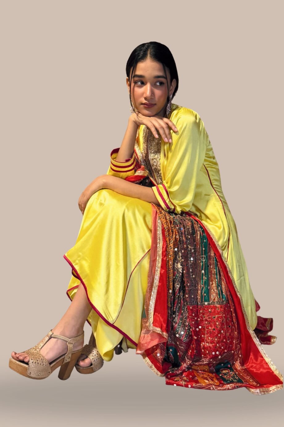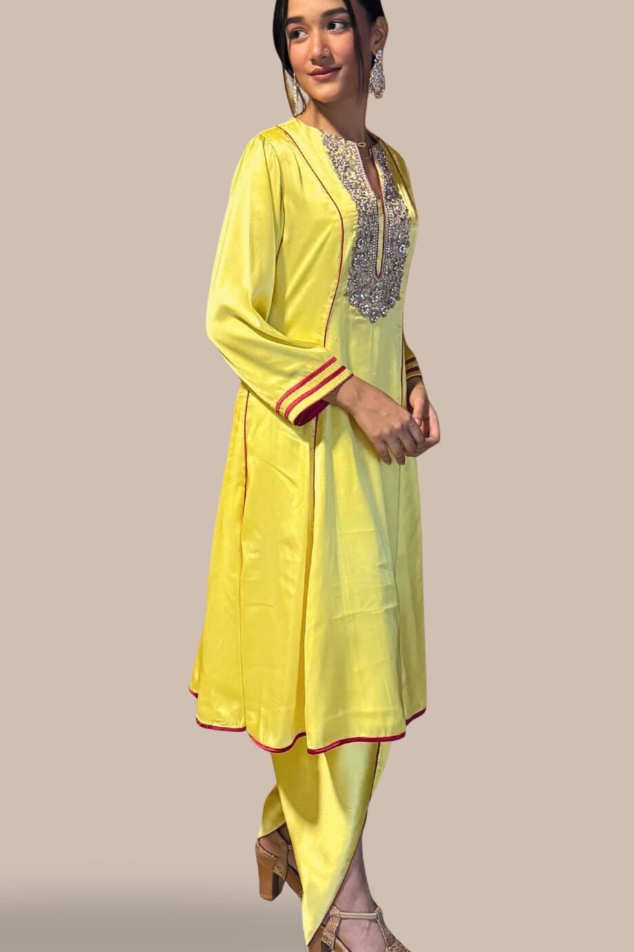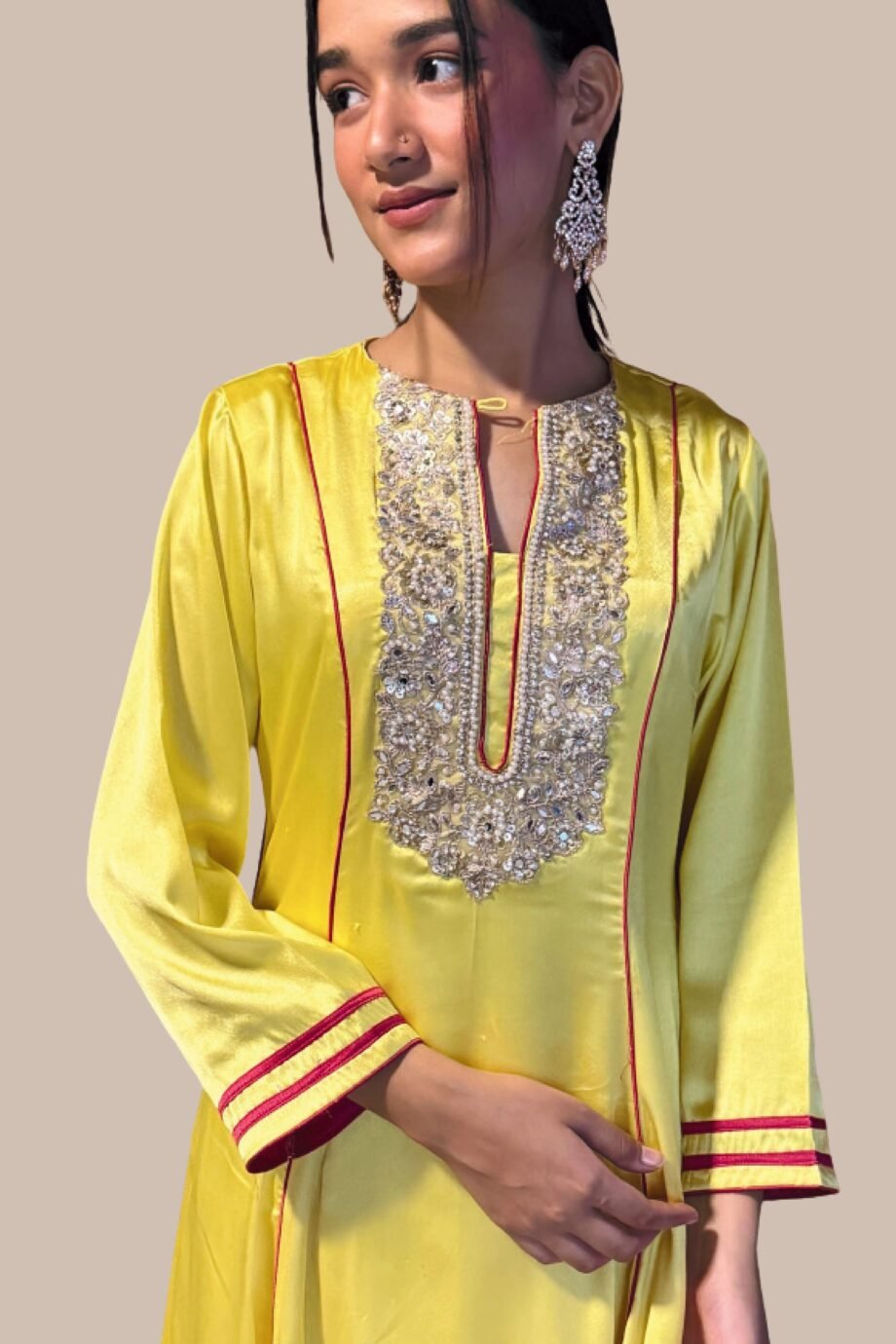 kurta = Satin, Pants = Satin, Dupatta = Crepe