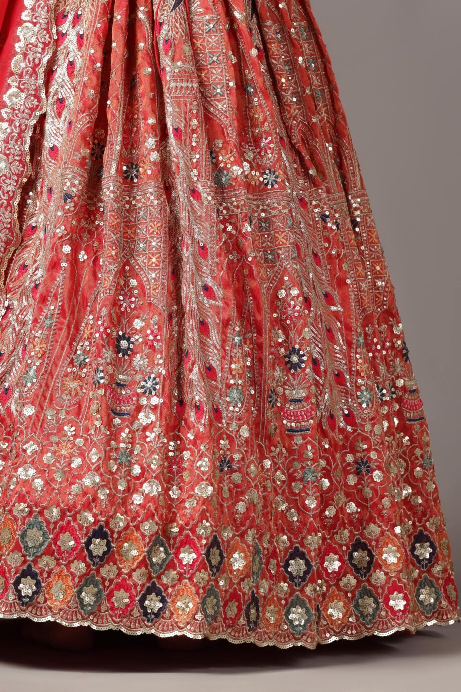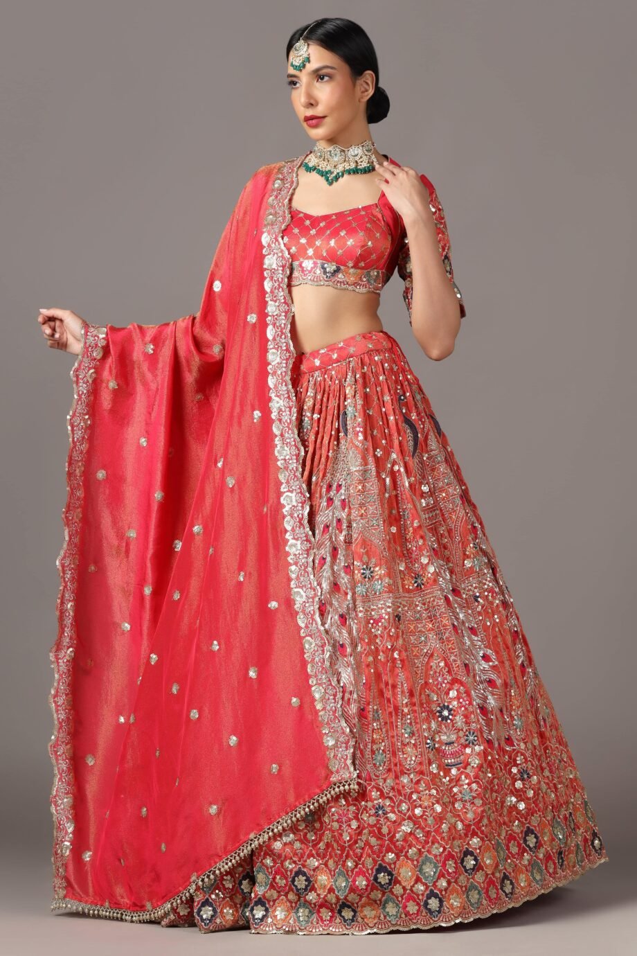 Description: Peacock inspired Lehenga with touch of hand work