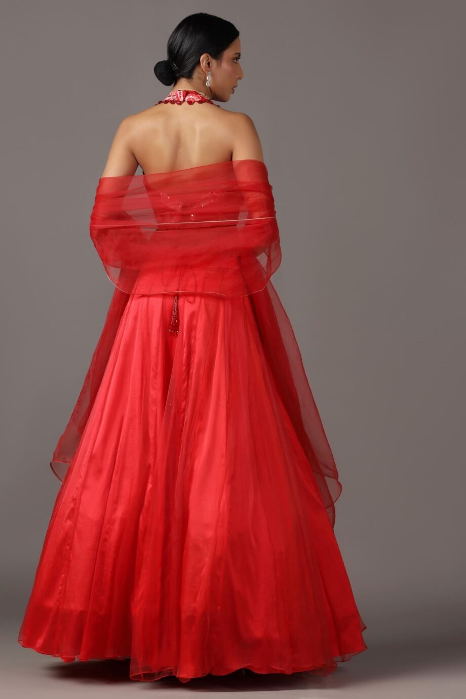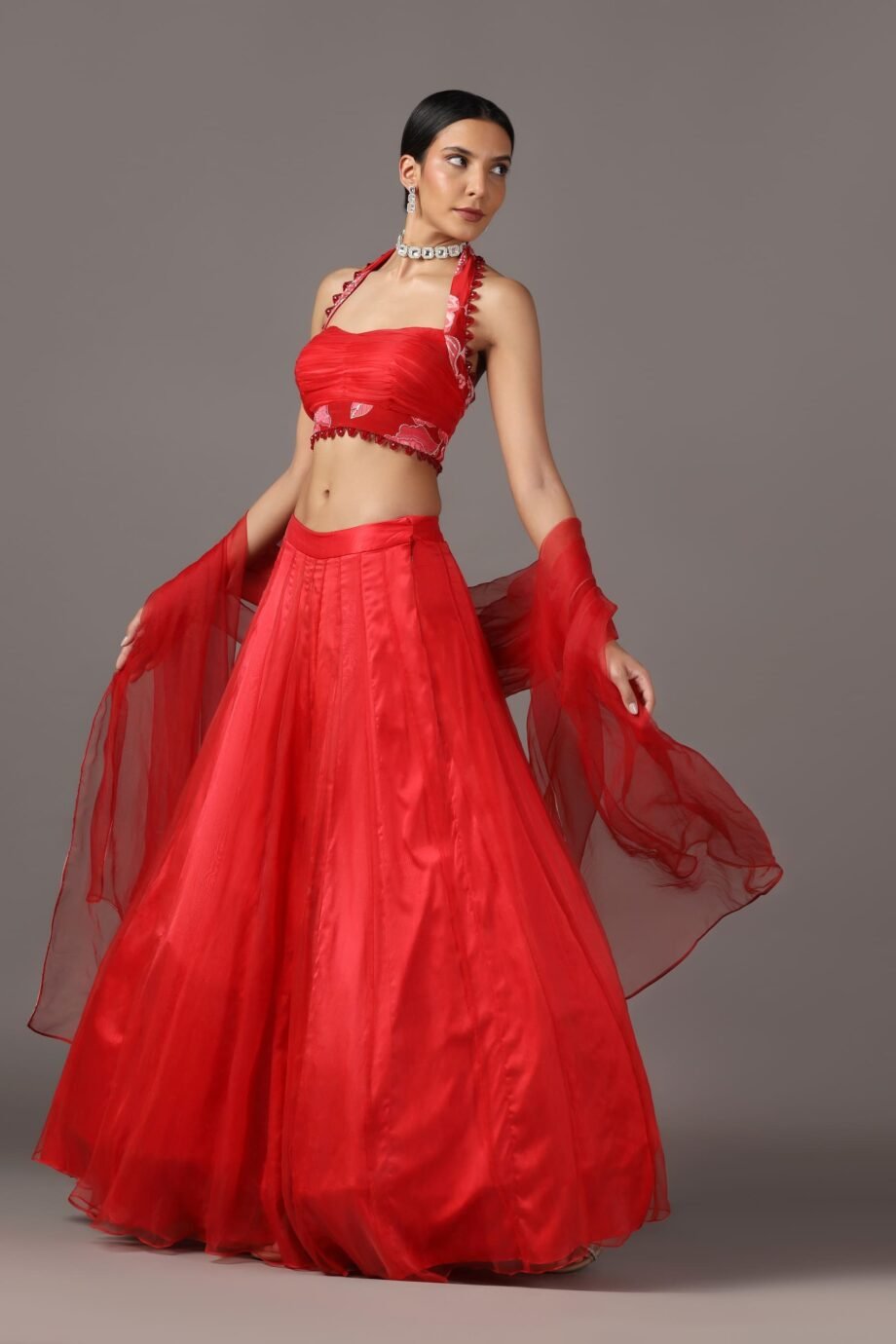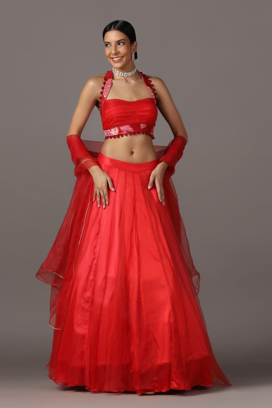 Description: Organza Lehenga With Pleated Blouse & Dupatta