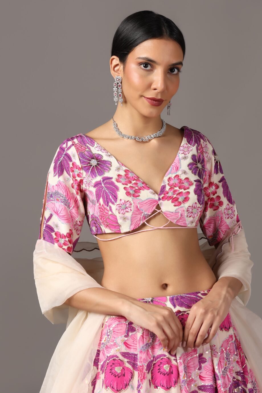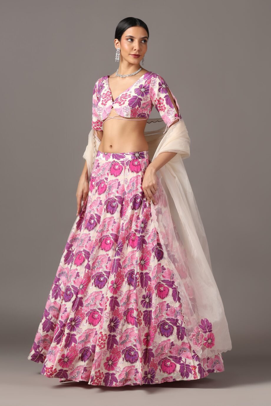 Fabric: Crepe- Lehenga & Blouse , Organza- Dupatta